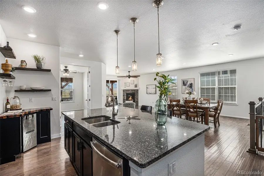 Located in the desirable Leyden Rock community, this ranch-style home combines stunning mountain views with a flexible,modern layout. The main level is warm and inviting with luxury vinyl plank flooring and an open-concept design that flowsseamlessly from the spacious great room into the dining area and gourmet kitchen. The kitchen features a large centerisland, granite countertops, and stainless steel appliances—perfect for both everyday living and entertaining. Tucked at theback of the home, the private primary suite showcases breathtaking mountain views, a walk-in closet, and a spa-like 5-piece ensuite bath. Two additional bedrooms, a full bath, a half bath, and a dedicated office on the main floor provideplenty of space for family, guests, or working from home. The fully finished basement is a standout feature with half of itdesigned as a complete apartment for multi-generational living, an au pair or extended stays. With its own full kitchen,spacious living area, bedroom, multi-purpose room, 3/4 bath, 1/2 bath, and separate laundry hookups, it’s a true homewithin a home offering endless possibilities. Beyond the walls of this beautiful property, Leyden Rock offers a lifestylecentered on outdoor living and community. Residents enjoy access to a pool, clubhouse, neighborhood parks, and miles oftrails that wind through scenic open spaces. Whether you’re sipping coffee while soaking in the morning mountain views,enjoying a short drive to Boulder or Golden, or commuting to Denver in about 40 minutes, this home is the perfect blend ofcomfort, convenience, and natural beauty.