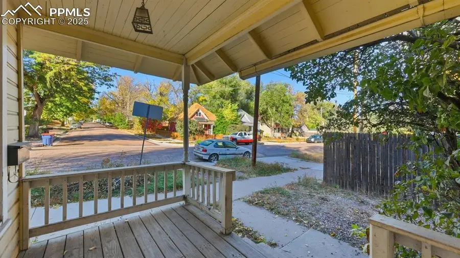 Prime redevelopment opportunity in the heart of Colorado Springs! Built in 1912, this 2-bedroom, 1-bath ranch-style home sits on a 0.6-acre fenced lot and offers incredible potential for those ready to bring new life to a classic property. The home features a traditional floor plan with original character throughout, including a welcoming covered front porch that opens into a bright living room with large windows and laminate wood flooring. A central dining area connects to the kitchen, which includes vinyl flooring, built-in shelving, wood cabinets, and laminate countertops. Appliances include an electric range oven, dishwasher, and stackable washer and dryer. The walk out Mud Room houses a refrigerator that stays. Two Bedrooms with wood laminate floors share an updated Shower Bathroom located off the Dining Area and features a tile floor, vanity, mirror, and tiled shower with built-in seat. Outside, enjoy a generous yard with mature trees, a gravel driveway, and a storage shed, perfect for tools, projects, or outdoor hobbies. The location offers easy access to schools, parks, and Memorial Hospital, and is just minutes from downtown Colorado Springs and Old Colorado City’s shops and restaurants. This property offers great potential for redevelopment or renovation and strong future value in a desirable area experiencing ongoing revitalization. Come preview this charming home today!