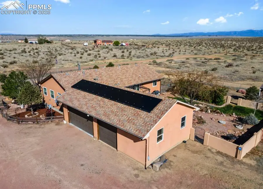 space bathed in natural light, enhanced by solar tubes and a cozy wood-burning gas fireplace. The chef's kitchen boasts granite countertops, a spacious island, and recently added stainless steel appliances. Enjoy the convenience of a spacious laundry room leading to an oversized 3-car garage with a private workshop! The private master suite features a walk-in closet, adjoined luxurious 5-piece bathroom, and a standing tub for a well-deserved self care day. Energy efficiency is key with fully paid-off solar panels and smart features such as a smart thermostat. Bonus — you will rest assured that there is an emergency solar battery backup system, ensuring power during outages. You will continue to experience peace and serenity outside, where you will find a fully fenced, xeriscaped front yard, a gazebo and deck in the concrete backyard including rose garden and fruit trees on an auto-drip system, and a convenient separated dog barn. All on a sprawling 1.01 acre lot zoned “A-3,” perfect for agricultural activities such as farming, livestocks, and/or horses. This property offers the best of small country living with room to grow —This is more than a home, it’s a lifestyle!