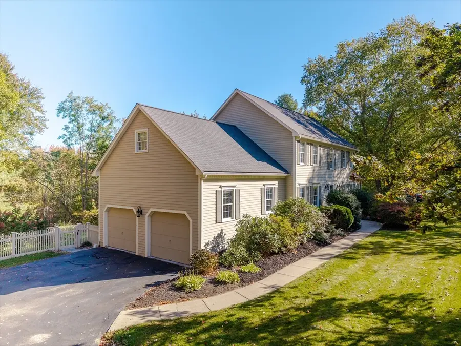 Beautiful 4-bedroom, 2.5-bath Colonial located in the highly desirable Winterberry Farms neighborhood of Franklin. Set on a private, wooded 1.43-acre lot with a fenced backyard, deck and patio, this home offers both comfort and privacy. Inside, refinished hardwood floors flow through much of the main level, featuring a separate dining room, first-floor laundry, spacious family room with fireplace, and a versatile living room currently used as a home office. The open-concept kitchen boasts upgraded countertops, plenty of cabinetry with SS appliances and great flow for entertaining. Upstairs the refinished hardwoods continue, all four bedrooms provide ample space, including a large main suite with an updated en-suite bath and a bonus room offering abundant closet space—perfect for a second home office, sitting area or nursery. Quick close on this beautiful home is preferred. Showings begin at 1st open house.