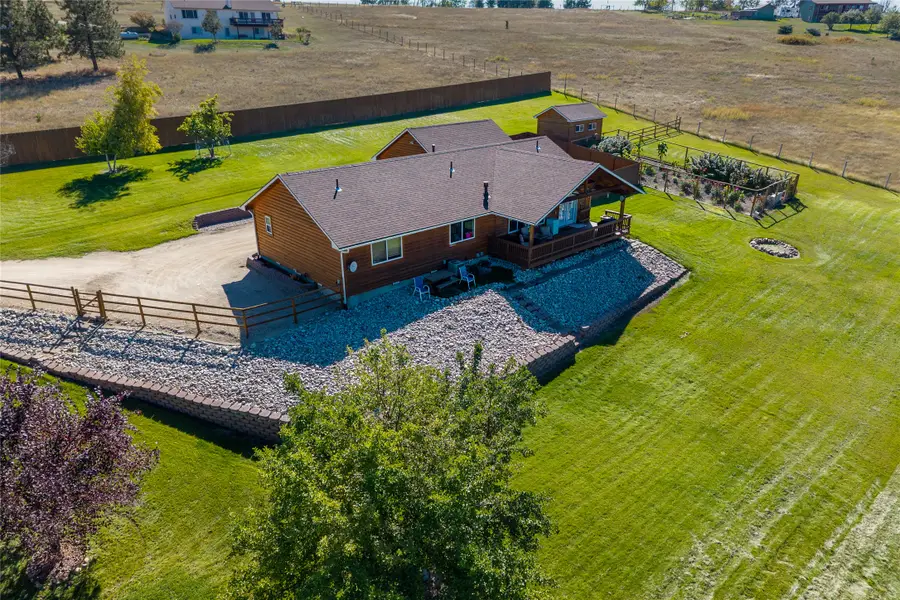 Enjoy easy one-level living in this charming log-sided home on 2.23 acres in the beautiful Bitterroot Valley. The light-filled living room showcases a beautiful river rock hearth and gas fireplace, while the spacious kitchen with breakfast bar flows to a dining area that opens onto a large covered deck—perfect for taking in the expansive mountain and big sky views. The primary bedroom has an ensuite bathroom with double vanity and walk-in shower. Two additional bedrooms provide flexible space. A convenient laundry room leads to the two-car garage with built-in cabinets, countertop, workbench, and storage above. Outdoors, you will appreciate the extensive landscaping, fenced yard, garden area, firepit, and mature fruit trees. The well-lit storage shed is a nice bonus. With a new roof, new luxury vinyl plank flooring, central air, and underground sprinklers, this tidy, well-maintained property combines comfort and convenience.
