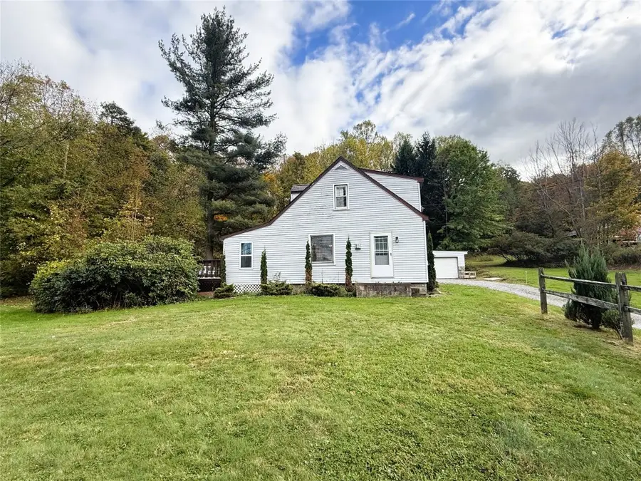 Charming 3-bedroom, 1.5-bath home on a 1-acre lot in Vernon Township, surrounded by beautiful views. Highlights include a spacious lot and a private backyard featuring a deck, firepit, and wooded scenery. The oversized detached 2-car garage offers ample workspace. The kitchen has been freshly updated with new flooring, countertops, and fixtures and opens to the dining room. The first floor includes a half bath and laundry area, along with a cozy bedroom. The well-lit living room features a gas fireplace, perfect for the chilly months ahead. Upstairs, you'll find a bright, updated bathroom with a tiled shower and two additional spacious bedrooms. A full, unfinished basement provides extra potential.