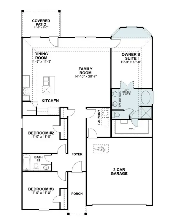 The Polo floorplan! This home is 1,619 square feet and features 3 spacious bedrooms, 2 full bathrooms, and a 2-car garage, making it ideal for hosting gatherings with friends and family. The open-concept design includes high ceilings in the family and dining room, adding to the allure of the space. The kitchen provides a stunning view of the living areas and is perfect for preparing and serving meals in the adjacent dining room. Outdoor enthusiasts will appreciate the covered patio at the rear of the house, offering an ideal spot to enjoy the backyard. The secondary bedrooms are located towards the front of the home, sharing access to the hall bath, while the owner's suite is at the rear for added privacy and tranquility. Additionally, the deluxe bathroom has a deep soaking tub and a separate walk-in shower, perfect for bringing the spa feel home. Contact us to learn more!