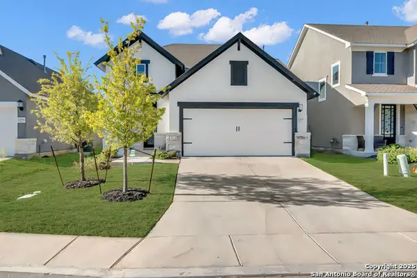 Assumable FHA Loan at 4.75%! Why settle for today's high rates when you could lock in this FANTASTIC RATE! Beautifully maintained home in Kallison Ranch just got even better with a $5K PRICE ADJUSTMENT. Sitting on a spacious CORNER LOT, it offers an OVERSIZED YARD, cozy FIRE PIT, and even a peach tree, your own little backyard retreat. Inside, the smart one-story layout features 3 bedrooms, 2 bathrooms, a dedicated office, and a versatile flex space perfect for a playroom, gym, or second living area. The heart of the home boasts a welcoming open concept anchored by a cozy gas fireplace - ideal for both everyday living and entertaining. Move-in ready with refrigerator, washer, dryer, and water softener included - no extra costs, no stress. Enjoy access to top-rated schools (within walking distance), plus amazing community amenities like a pool, playground, dog park, duck pond, and walking trails. And with the new H-E-B and shops opening nearby, daily convenience just got a major upgrade.